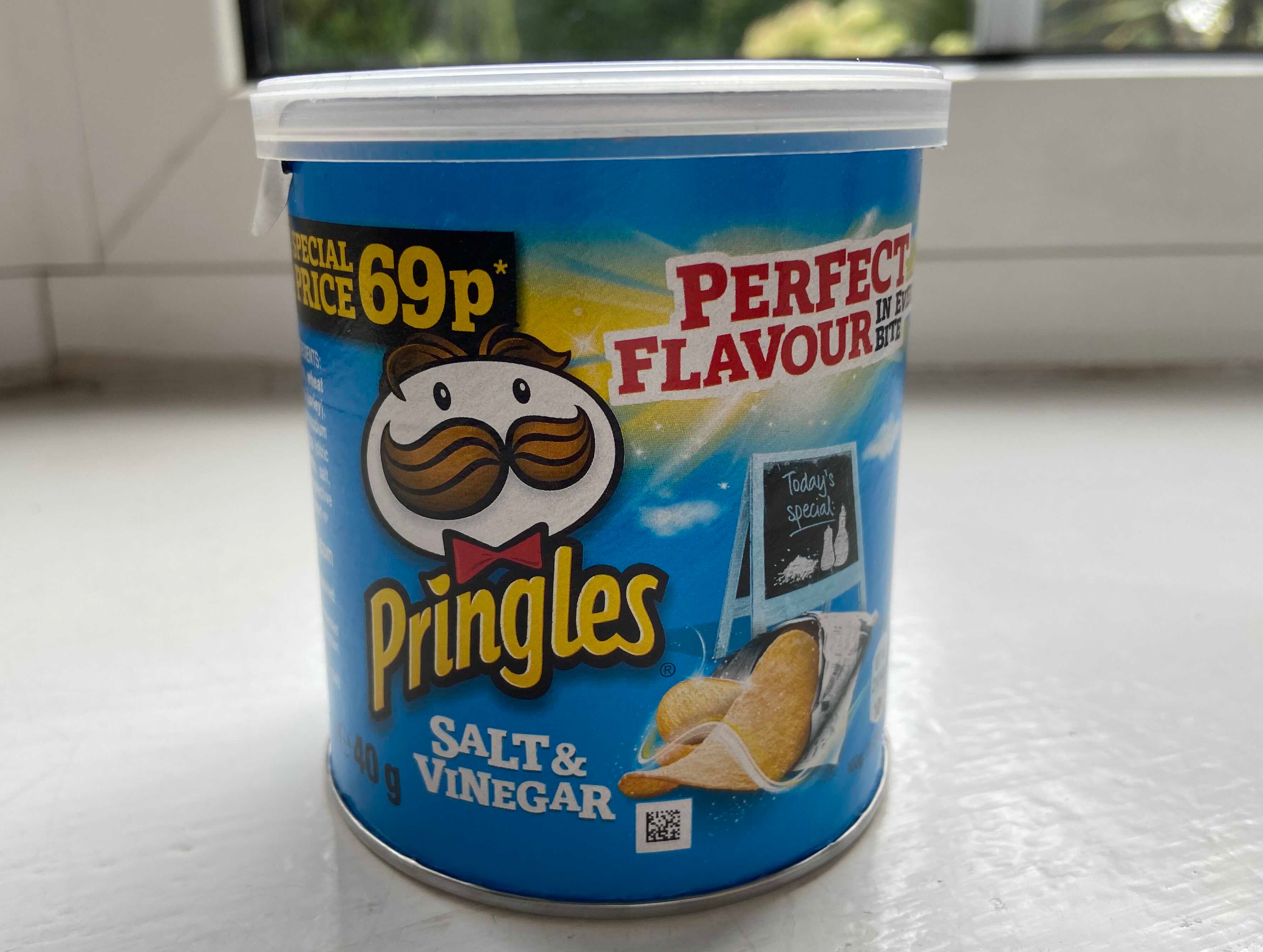 영국 사람들은 소금과 식초를 정말 좋아한다. 짜고 시지만 생각보다 맛있는 조합이다. 식초 뿌린 감자튀김, 솔트 앤 페퍼 치킨은 국민 음식이고 소금 & 식초맛 스낵도 그 종류가 정말 다양하고 인기가 많다. 프링글스도 소금식초 맛이 있다. 솔트 앤 비네가 프링글스를 파는 나라가 영국 뿐인 건 아니지만 영국 사람들이 워낙 좋아하기도 하고 한국에는 없는 맛이니까 영국 여행 기념품으로 사갈만 한 스낵이다. 40g 짜리 작은 캔은 69펜스이다.